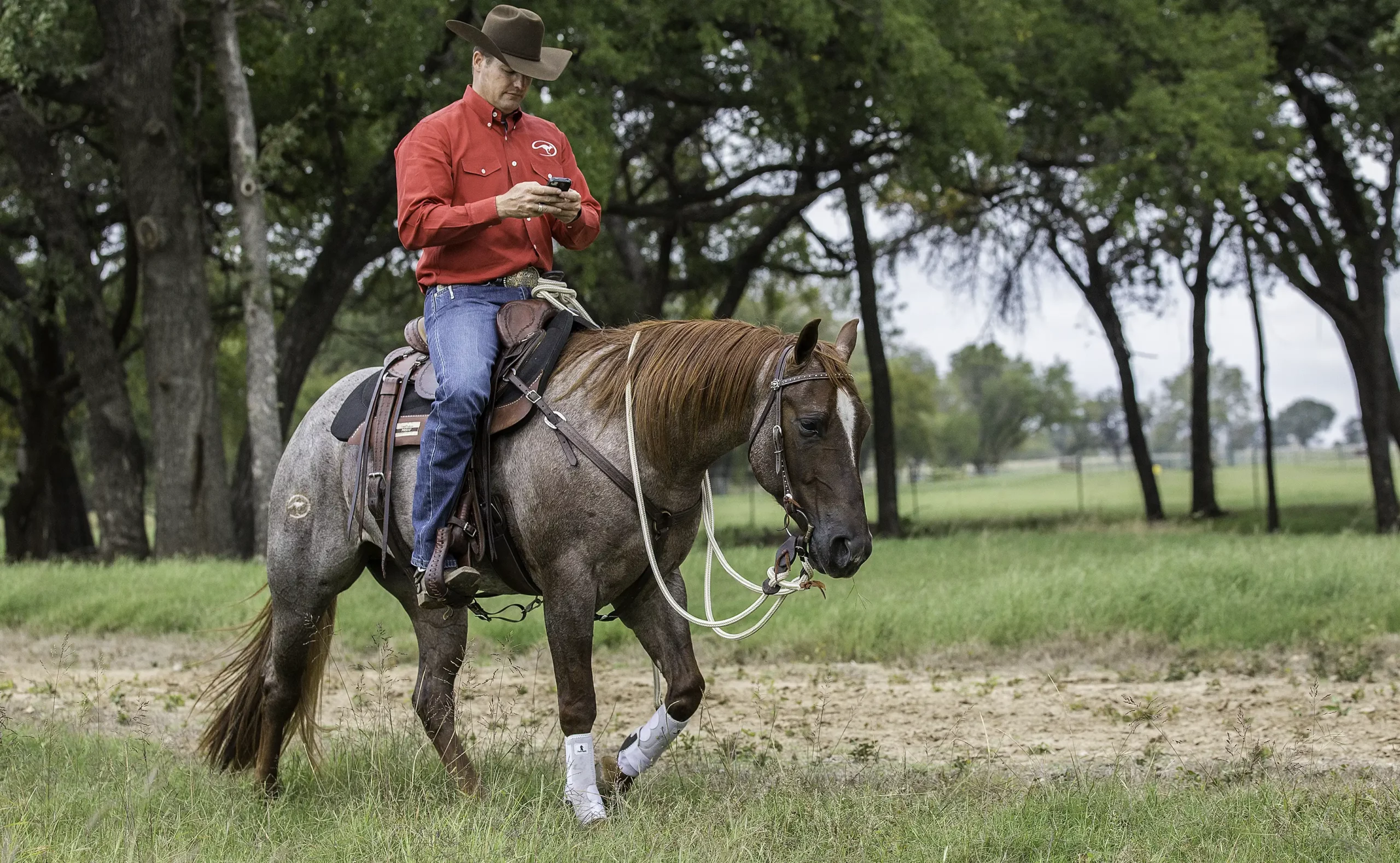 A horse can only think about one thing at a time. He’s either got his attention on you or on his next snack. If you’re walking down the trail and your horse grabs a mouthful of grass, he’s obviously not thinking about you. You need to redirect his feet and make him hustle. As soon as he snatches grass, bend him around in a circle and kick his side with your inside leg. Wake him up and get his attention back on you. You’re saying to the horse, “Hey, you don’t have time to be eating grass because you’re too busy listening to me and hustling your feet!”