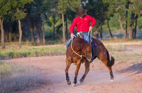 If, once you get the horse stopped with one rein, you do not feel confident handling the situation from the saddle, there’s nothing wrong with that. You can just as easily hustle his feet from the ground to get him to use the thinking side of his brain. Lunging for Respect Stage Two is a great exercise to do in this situation. Remember, there’s never any shame in getting off your horse and fixing him from the ground. A great horseman finds the solution to a problem by keeping his and his horse’s safety foremost in mind. Just like my mentor Ian Francis told me: There are a lot of heroes in the graveyard. Too many people let their egos get in the way and end up getting bucked off their horses. You have one body, so take care of it. You can’t train the horse if you’re dead. The worst possible thing you could do is have the horse bolt and then get off him and take him back to the barn and put him back in his stall. Then the horse starts to think that bolting is the answer to getting out of work. You’d be surprised how quickly horses, especially the lazier ones, pick up on things like that. That’s why it’s so important to put the horse’s feet to work and show him that running off only results in more work, not less.