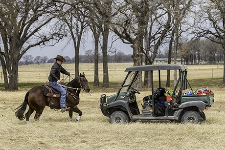 Then, before you get back in the saddle, doublecheck his “go” button by practicing some Lunging for Respect Stage Two. As soon as you point with your hand to tell the horse to move, he should hustle his feet out onto the circle. If he doesn’t, use the end of your mecate to make him feel uncomfortable for ignoring you. A good rule of thumb to remember is if your horse has an attitude about moving forward when you work with him on the ground, or he’s lazy, his response is only going to get worse under saddle.