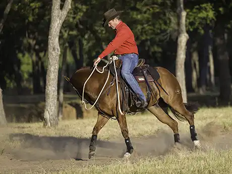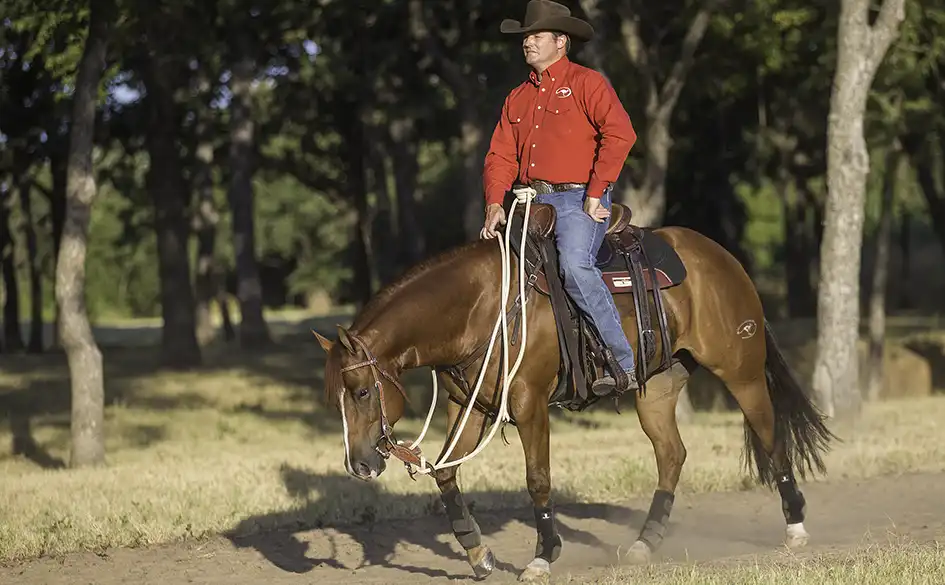 If he gets jiggy again, immediately put his feet to work. How you direct his feet isn’t important. The key, however, is to redirect the horse’s feet. You don’t want to do it so aggressively that you scare the horse. A horse that’s jigging is nervous; thumping his sides with your spurs or jerking on the reins will only make him more reactive. However, if you move him around in a cutesy, cutesy western pleasure jog, you won’t accomplish anything either. There’s a fine balance there. You want him to sweat and realize that walking on a big, loose rein is by far the better option. Jigging only results in having to work hard and sweat.